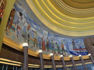 The area where passengers used to board trains is now a giant Omnimax Theater. It features a domed screen with ultramodern sound. Heffner explained, “When you see a film in it, it’s in front of you, above you, on each side of you. It’s just this wonderful immersive experience in space films, underwater films or ocean films that look incredible.”