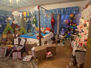 Planning for the annual event begins early in the year. “Volunteers have been decorating the house as long as it’s been a Metropark,” explained Carpenter. “What you’ll find this year will be completely different from last year because every year is different. We have some returning and some mix of returning and new decorators each year who can be individuals, families, work groups, clubs, churches, you name it. They’ve decorated it and they keep coming back.” Ideas are pitched in February or March with display proposals for each of the 30 decorated rooms. After selecting the best ideas, two weeks in November are set aside to get the house ready for 20,000 guests.
