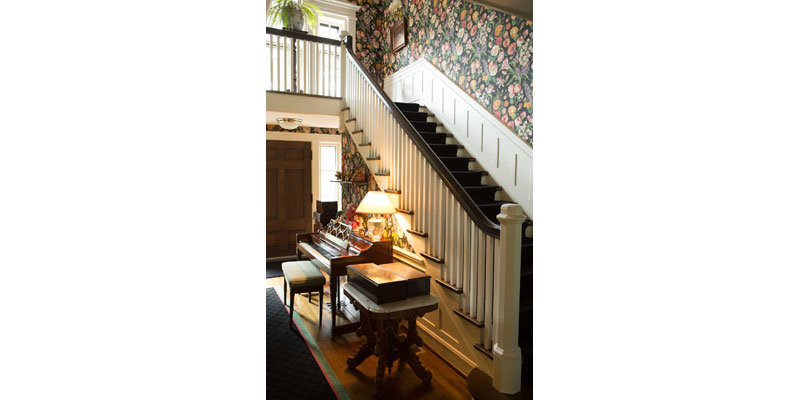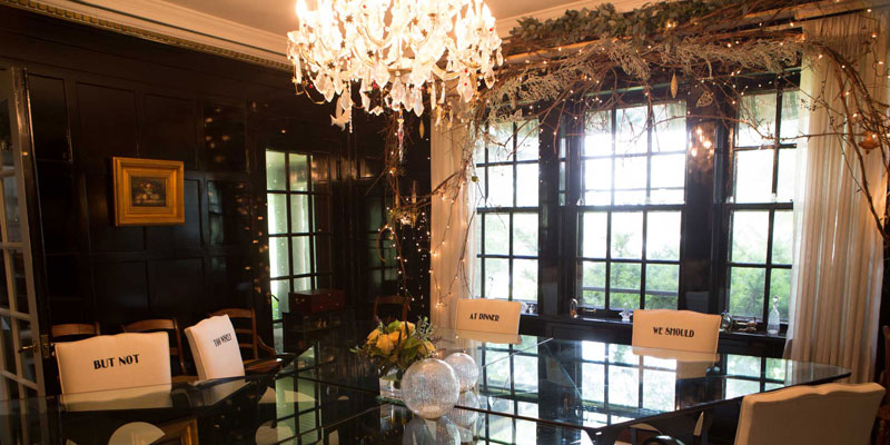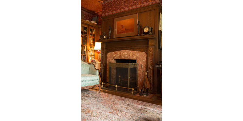 The entry features period wallpaper and the home’s traditional furnishings, marble insets, rich wood paneling and tile, is as compelling today as it was 100 years ago. The dramatic black dining room features a most unusual and eye-catching dining table enhanced by a unique seating arrangement.