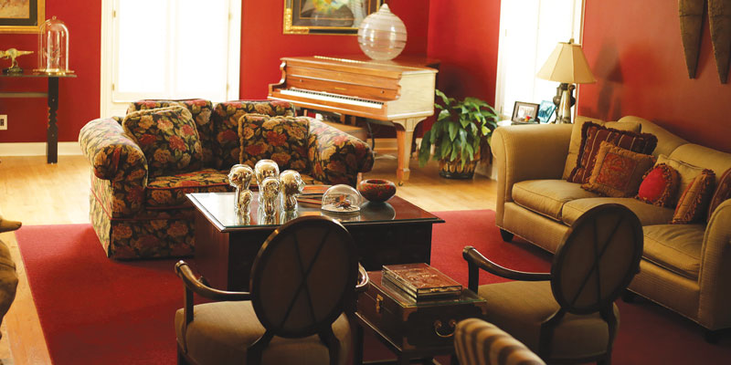 Sitting majestically on a corner in Westmoreland, the brick beauty, built in 1939, is owned by Tim Valko and Jim Moore. Lovingly updated to reflect the owners’ good taste, the first floor is traditional; understated elegance with beautiful glass and art piece adornments. The home is used for many charitable functions and lends itself well for an intimate dinner of 10 or a group of 50— often with Tim sharing his culinary skills.